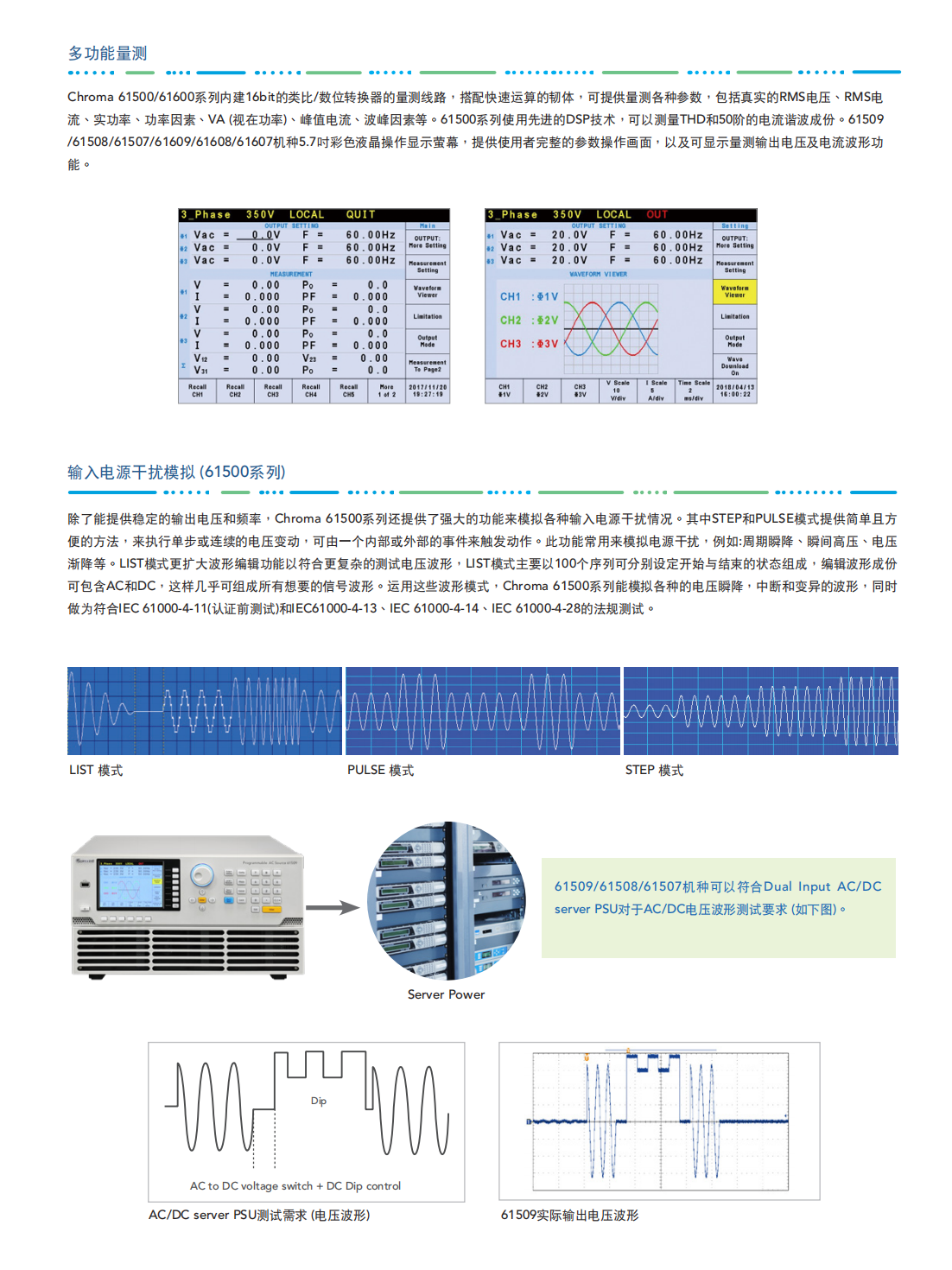 Chroma进阶可编程交流电源MODELMODEL 61509/61508/61507/ 61609/61608/61607