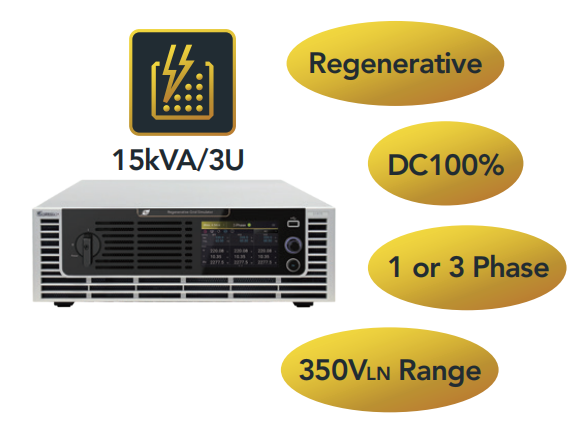 61809/61812/61815机种为Chroma 61800回收式电网模拟电源系列中,功率为9kVA/12kVA/15kVA的电源测试仪器产品。此机种以3U机体高度具备最大15kVA输出功率,实现高功率密度设计;且具有单相、三相输出模式;输出电压范围可达相电压350V、线电压606V,透过单相三线配置可达单相电压700V;此外更可透过主从控制实现多台单机并联组合,提供更大输出功率以满足测试需求。